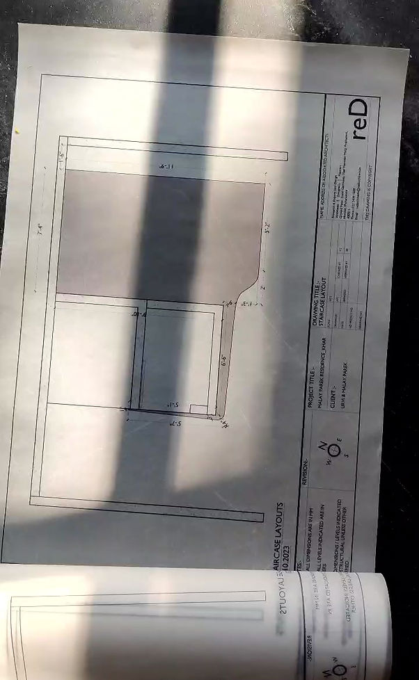 Technical drawings as layers of tracing sheets with the plan of each stair layered on top of each other to communicate the exact as well as relative measurements on site for construction.